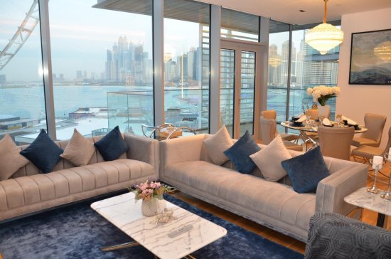 Внутреннее оформление резиденций, расположенных на побережье Персидского залива, выполнено в стиле минимализма с использованием светлых оттенков. В гостиной и спальнях имеются натуральный ковер, высококачественная мебель и темные элементы декора. Кухня укомплектована современной итальянской техникой и имеет бесшовные столешницы.